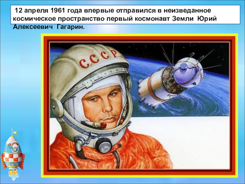 Слайд 14 12 апреля 1961 года впервые отправился в неизведанное космическое