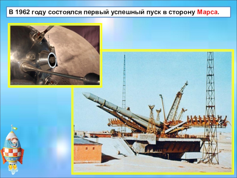 Слайд 23В 1962 году состоялся первый успешный пуск в сторону Марса.