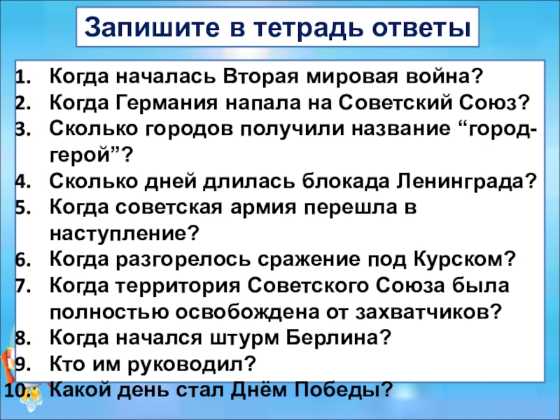 Запишите в тетрадь ответы