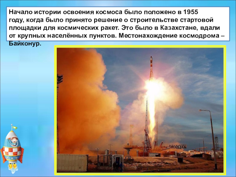 было в Казахстане, вдали от крупных населённых пунктов. Местонахождение космодрома – Байконур.