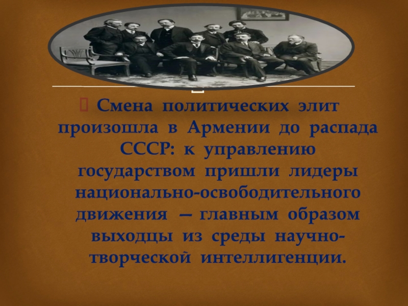 Слайд 2Смена политических элит произошла в Армении до распада СССР: к