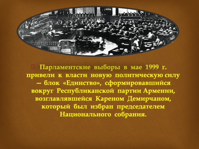 Слайд 9Парламентские выборы в мае 1999 г. привели к власти новую
