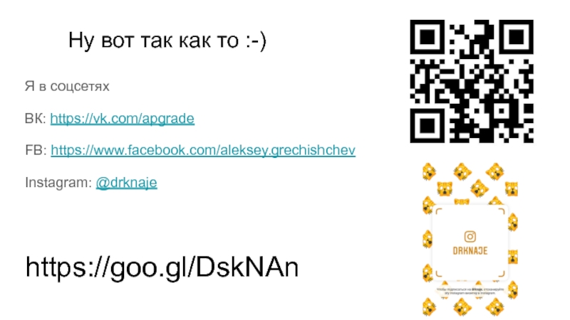 Ну вот так как то :-)Я в соцсетяхВК: https://vk.com/apgradeFB: https://www.facebook.com/aleksey.grechishchevInstagram: @drknajehttps://goo.gl/DskNAn