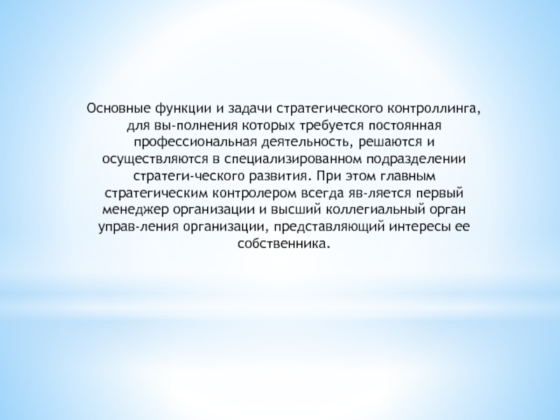 Основные функции и задачи стратегического контроллинга, для вы-полнения которых требуется постоянная профессиональная деятельность, решаются и осуществляются в