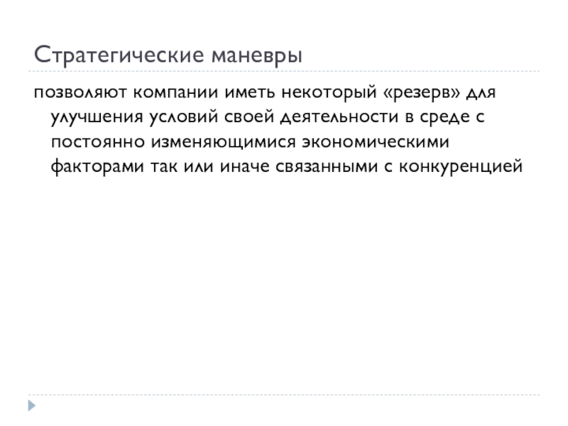 Стратегические маневрыпозволяют компании иметь некоторый «резерв» для улучшения условий своей деятельности в среде с постоянно изменяющимися экономическими
