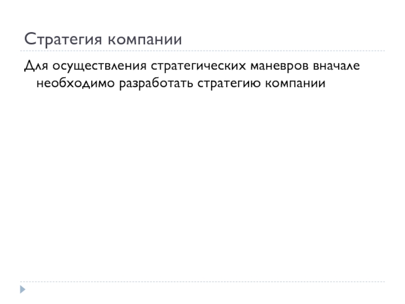 Для осуществления стратегических маневров вначале необходимо разработать стратегию компании