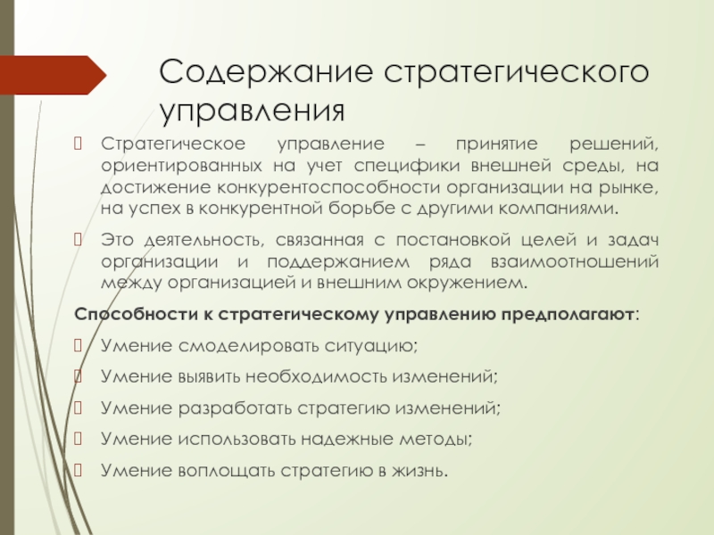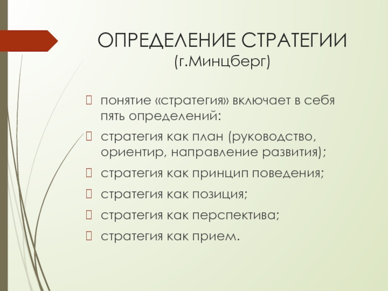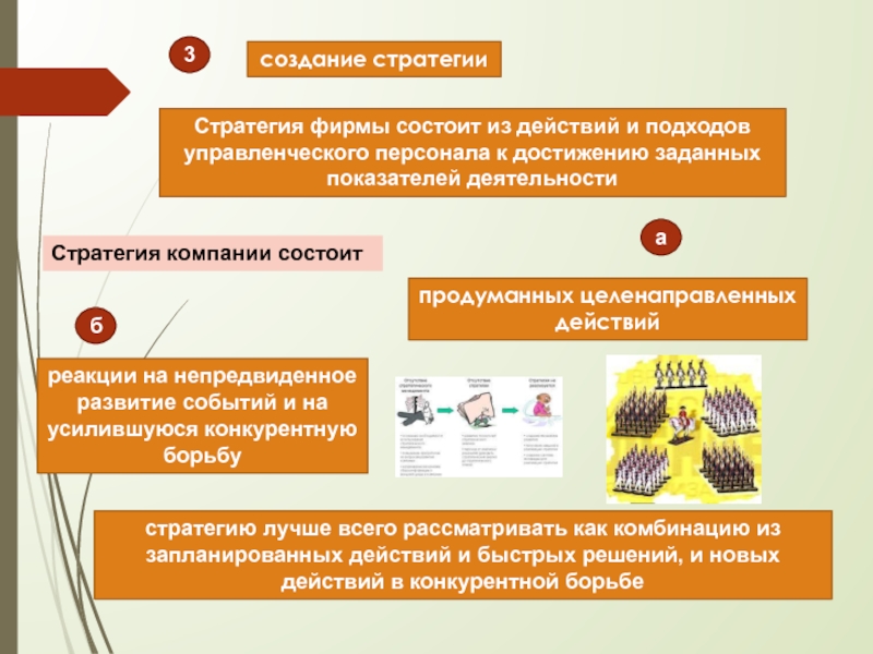 стратегию лучше всего рассматривать как комбинацию из запланированных действий и быстрых решений, и новых действий в конкурентной борьбе