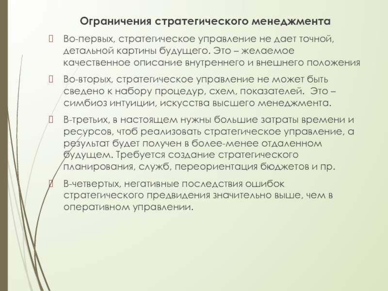 Возникает необходимость не реагировать на ситуации, а предвидеть их, и на этой основе строить управление