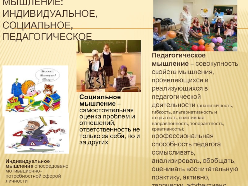 Социальное мышление – самостоятельная оценка проблем и отношений, ответственность не только за себя, но и за других