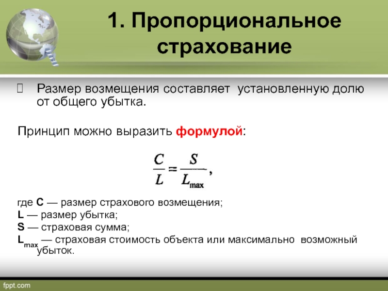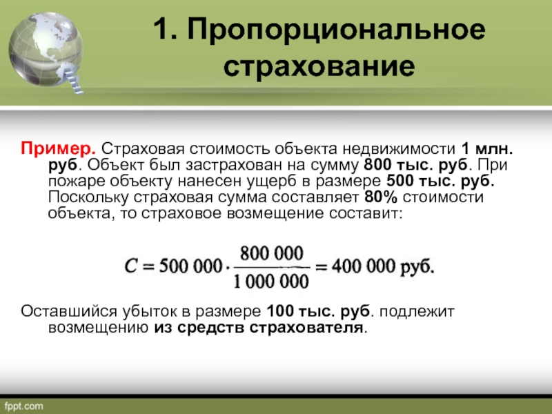 Слайд 111. Пропорциональное страхование