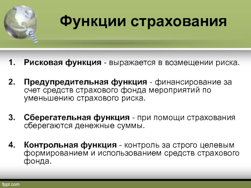 Слайд 4Функции страхования
