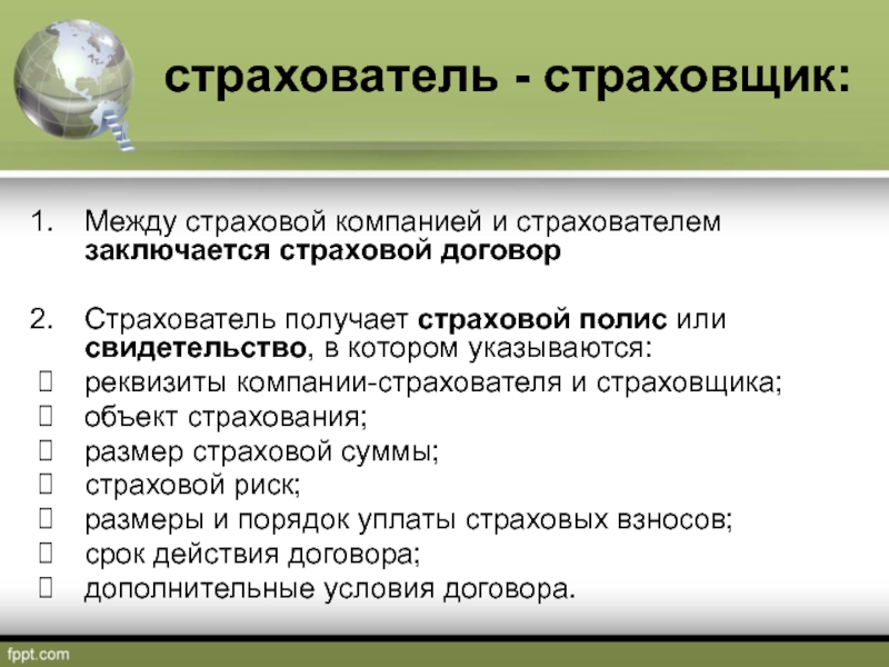 Слайд 6страхователь - страховщик: