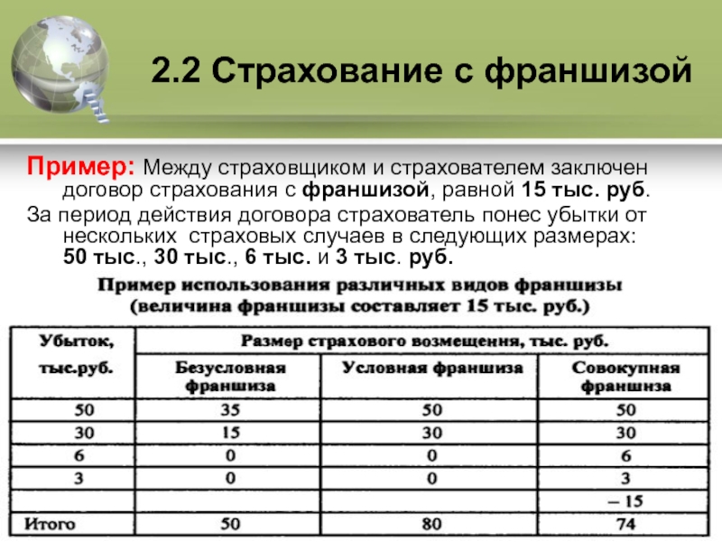 2.2 Страхование с франшизой