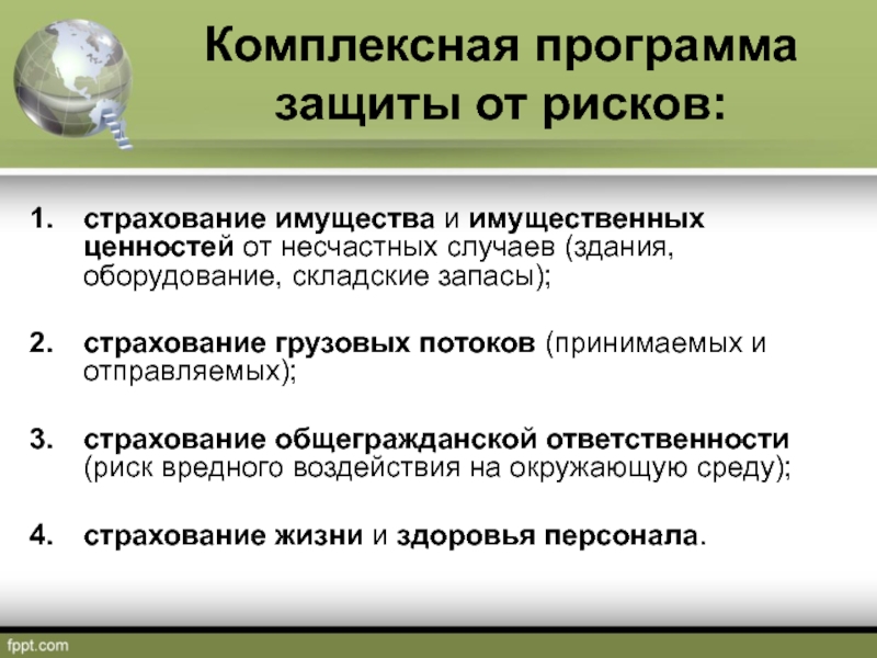 Слайд 5Комплексная программа защиты от рисков: