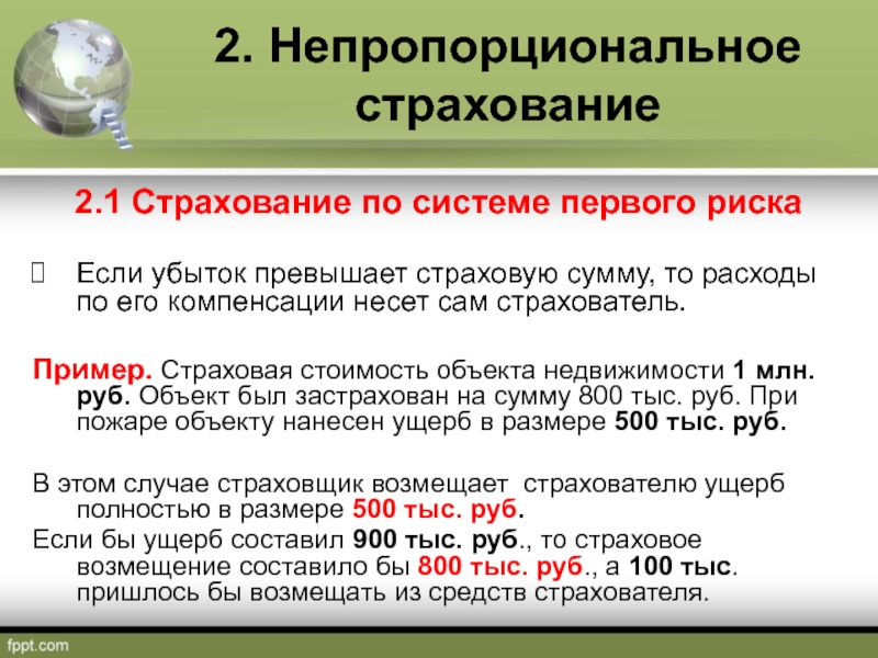 2.1 Страхование по системе первого риска