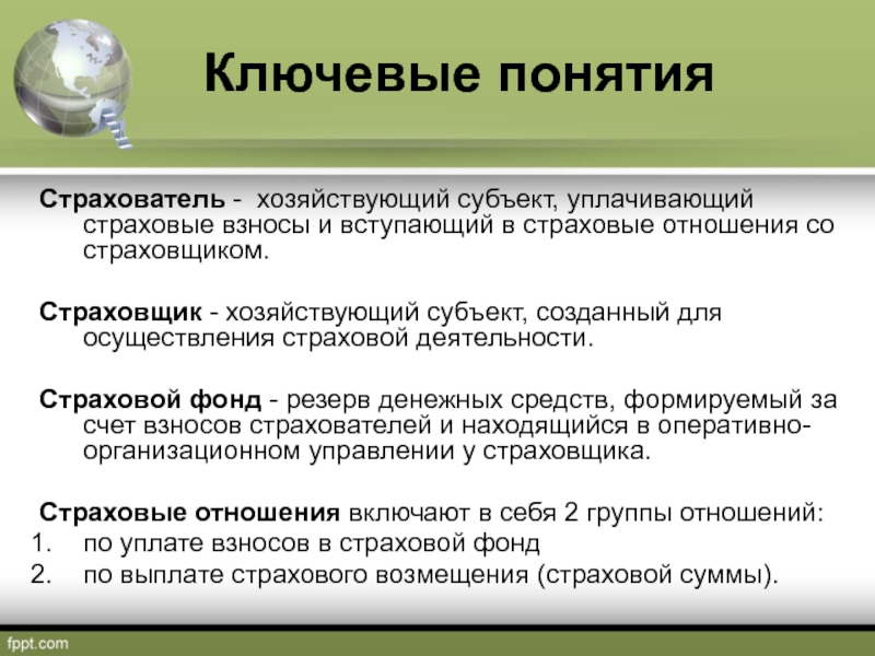 Страхователь - хозяйствующий субъект, уплачивающий страховые взносы и вступающий