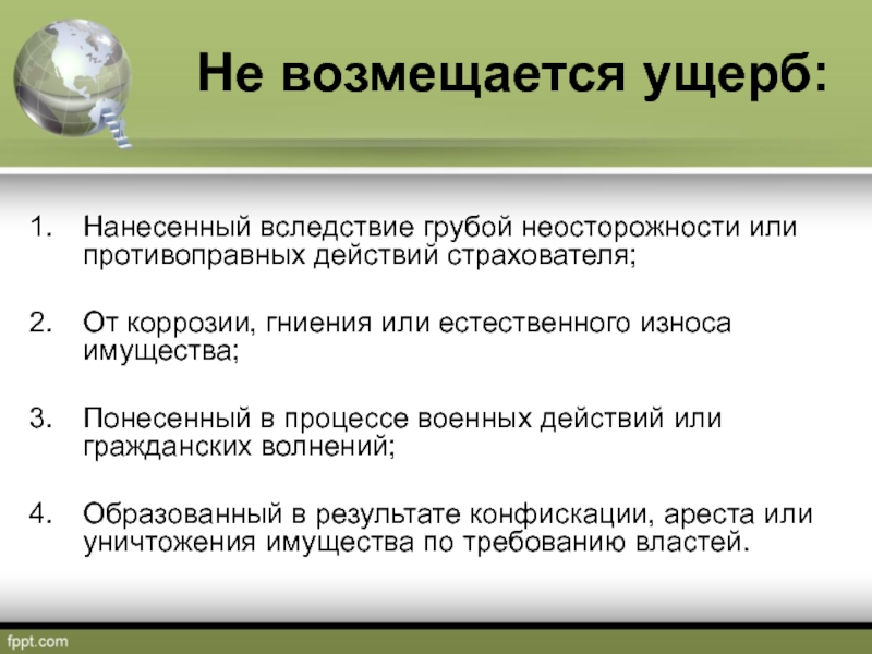Слайд 7Не возмещается ущерб:
