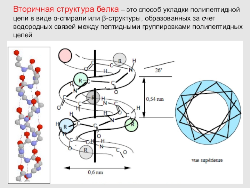 Слайд 12Вторичная структура белка – это способ укладки полипептидной цепи в