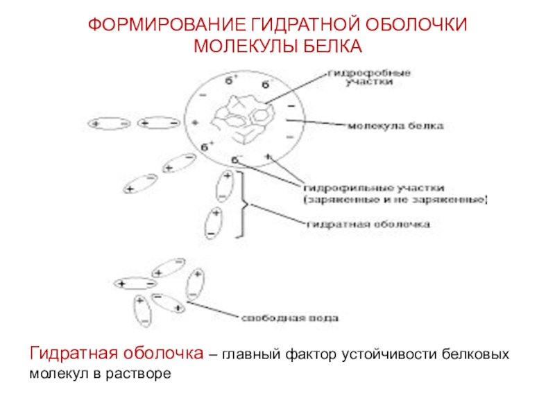 Слайд 25ФОРМИРОВАНИЕ ГИДРАТНОЙ ОБОЛОЧКИ МОЛЕКУЛЫ БЕЛКА