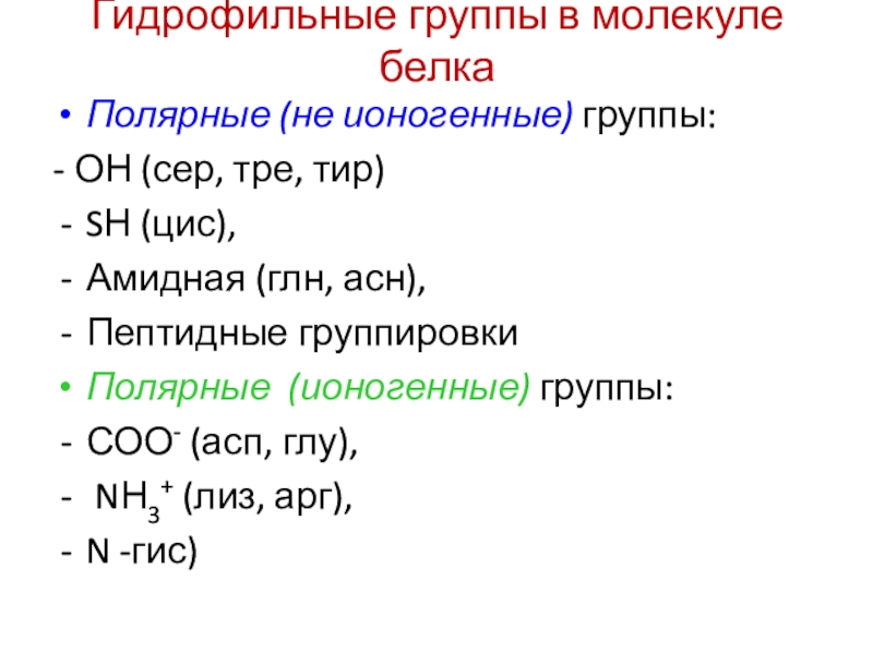 Слайд 24Гидрофильные группы в молекуле белка