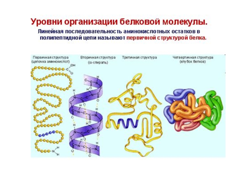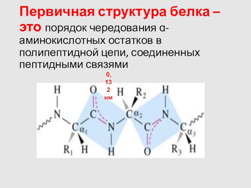 Слайд 10Первичная структура белка – это порядок чередования ɑ-аминокислотных остатков в