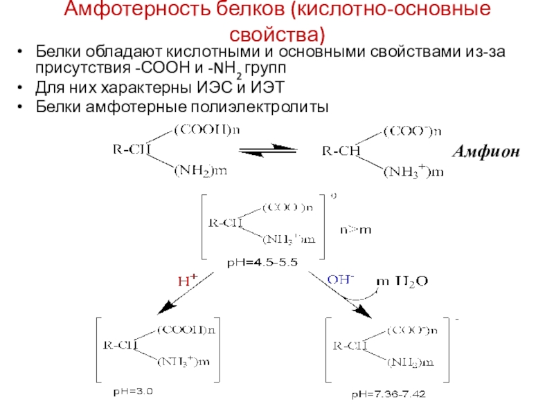 Слайд 27Амфотерность белков (кислотно-основные свойства)