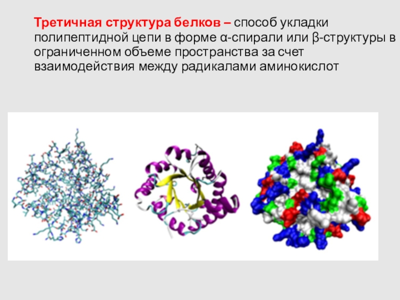 Слайд 15Третичная структура белков – способ укладки полипептидной цепи в форме
