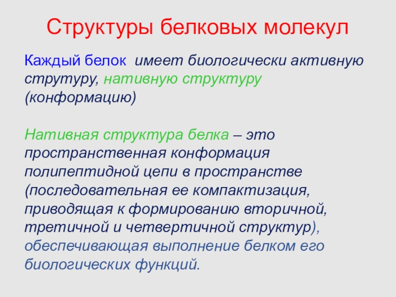 Каждый белок имеет биологически активную струтуру, нативную структуру