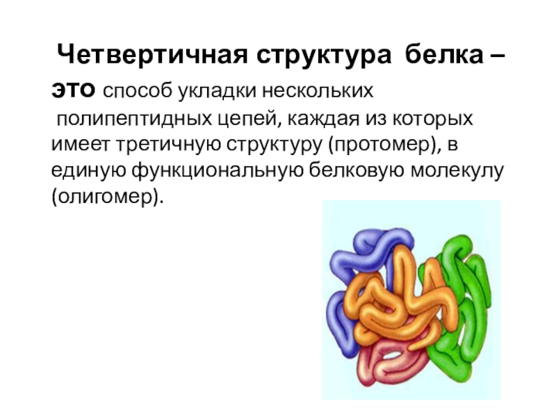Слайд 18 Четвертичная структура белка – это способ укладки нескольких