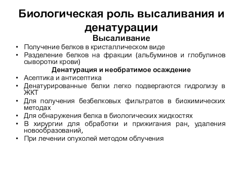 Слайд 31Биологическая роль высаливания и денатурации