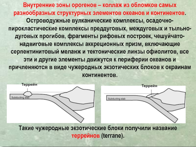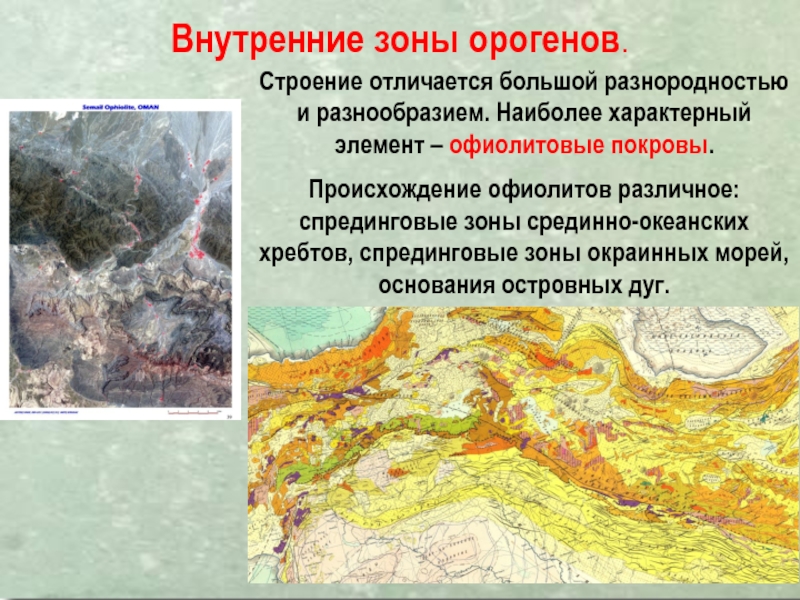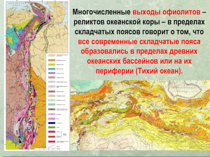 Слайд 16Многочисленные выходы офиолитов – реликтов океанской коры – в пределах