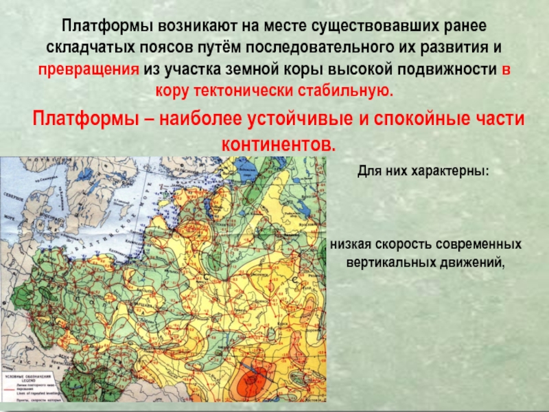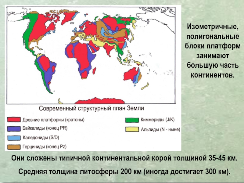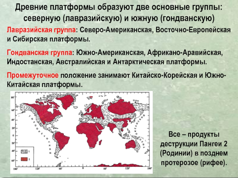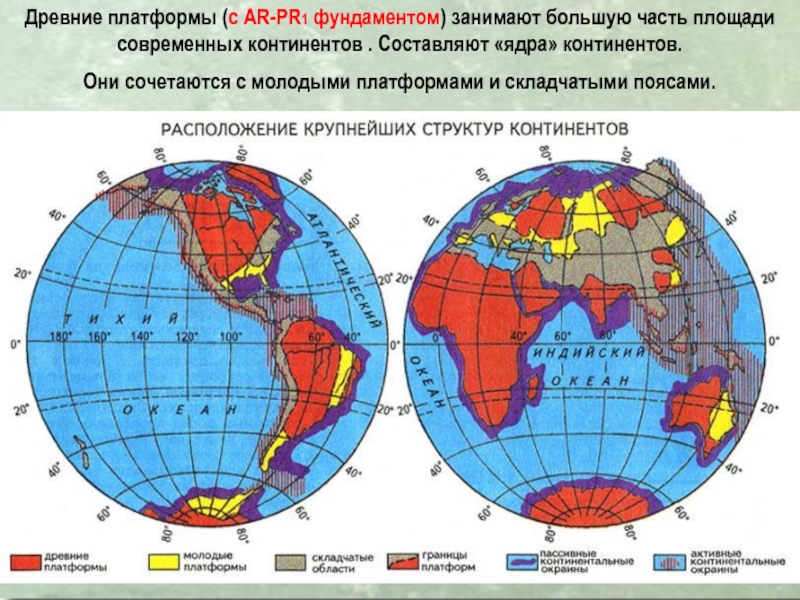 Слайд 7Древние платформы (с AR-PR1 фундаментом) занимают большую часть площади современных