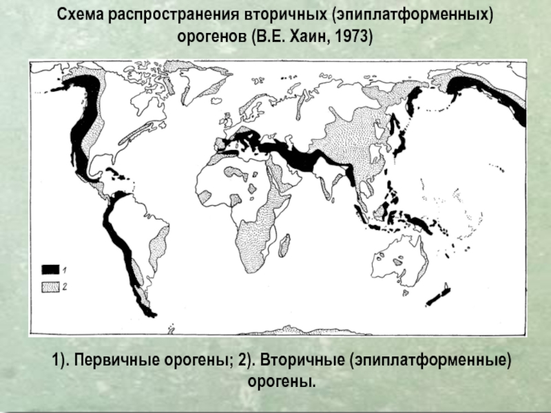 Слайд 100Схема распространения вторичных (эпиплатформенных) орогенов (В.Е. Хаин, 1973)