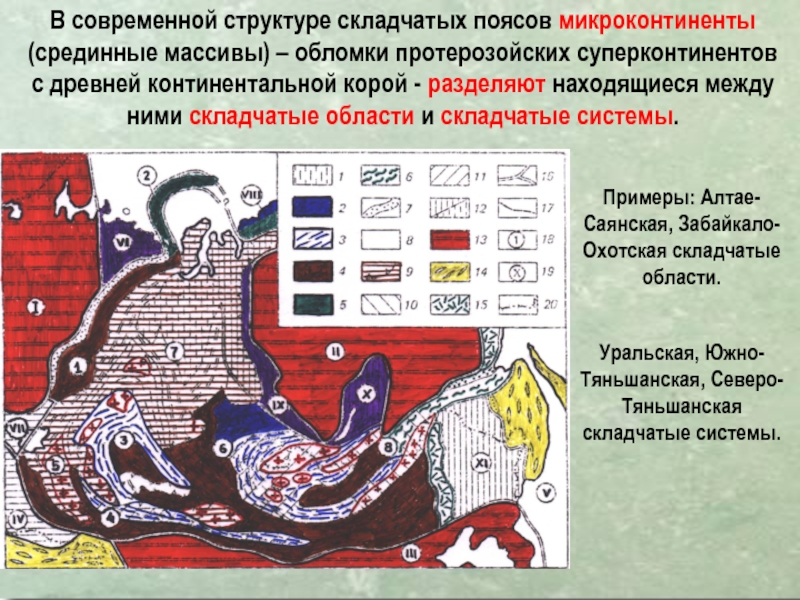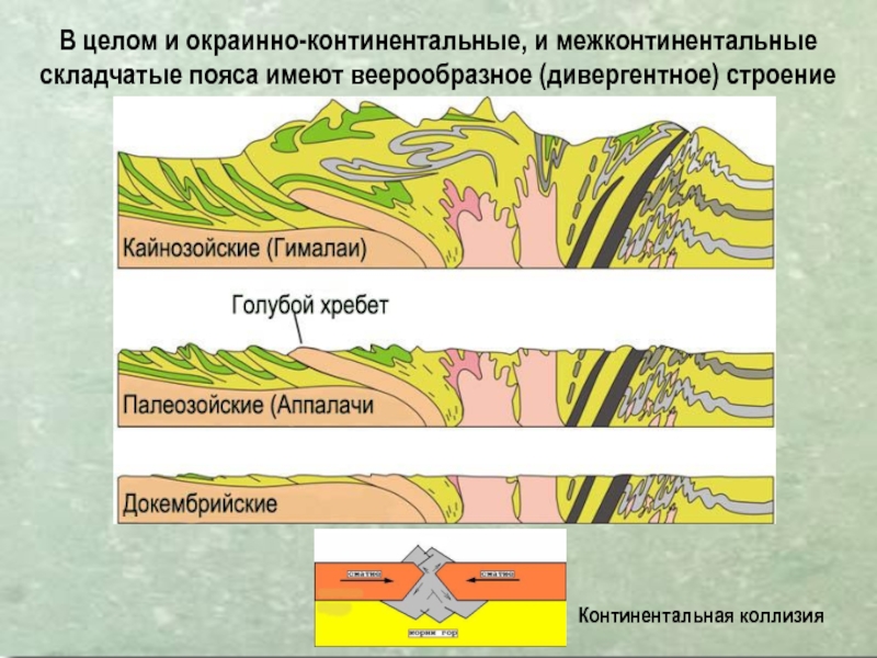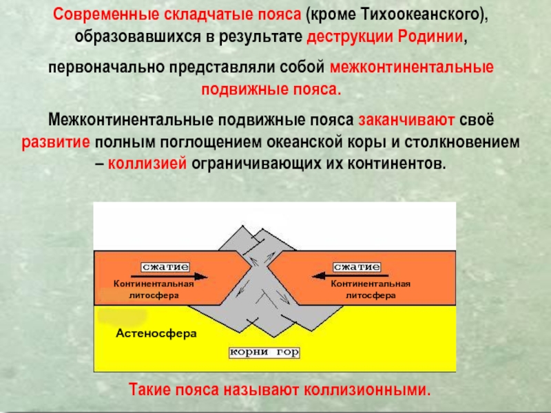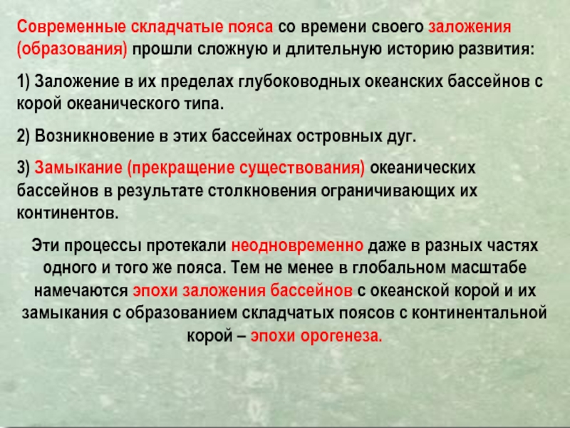 Слайд 22Современные складчатые пояса со времени своего заложения (образования) прошли сложную