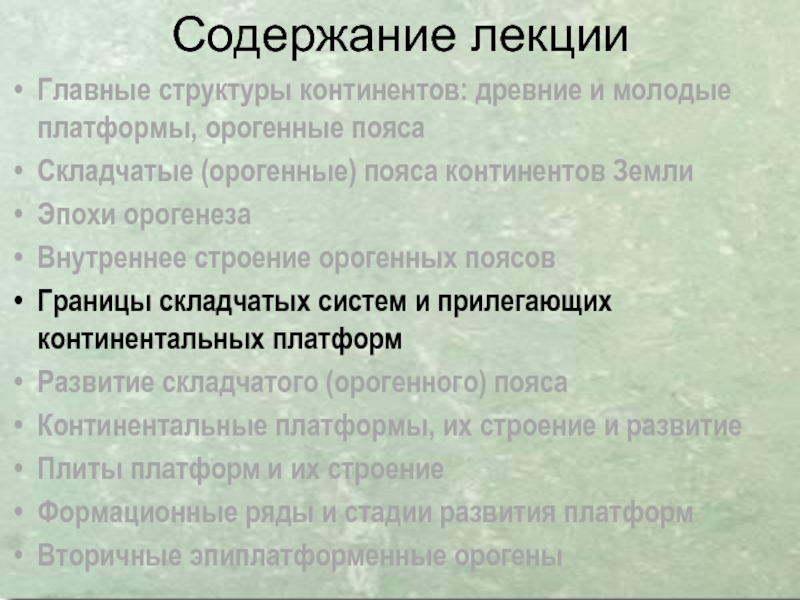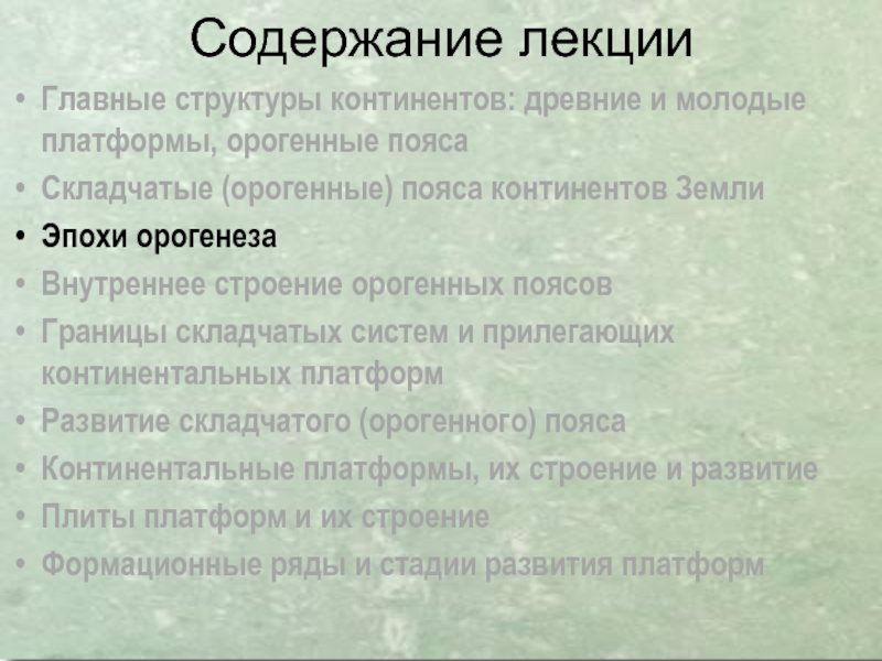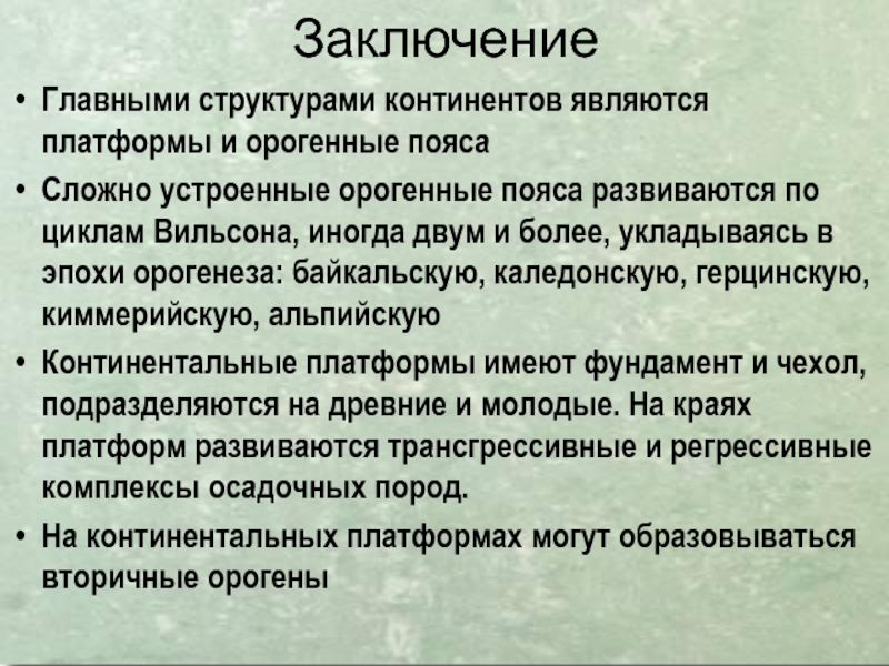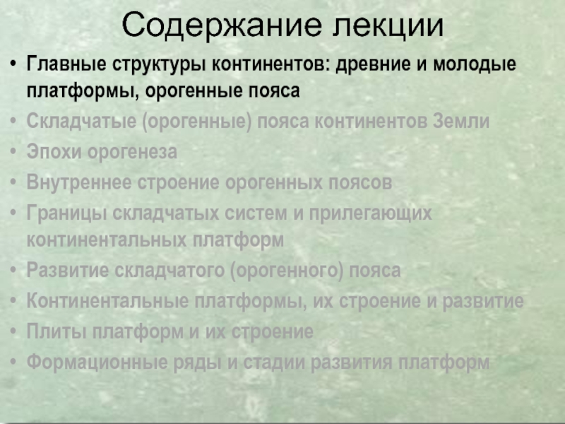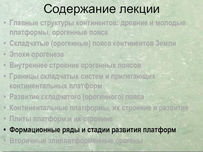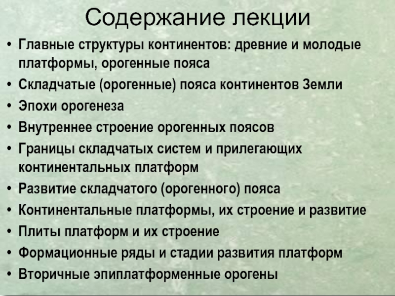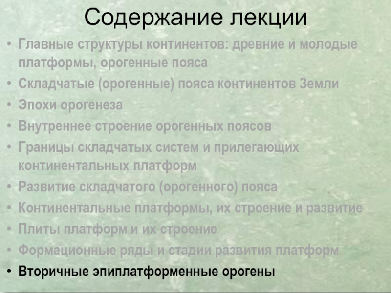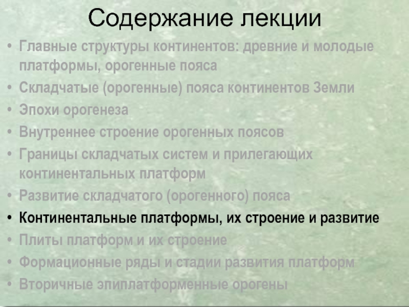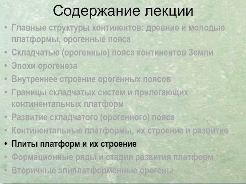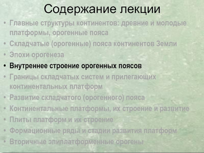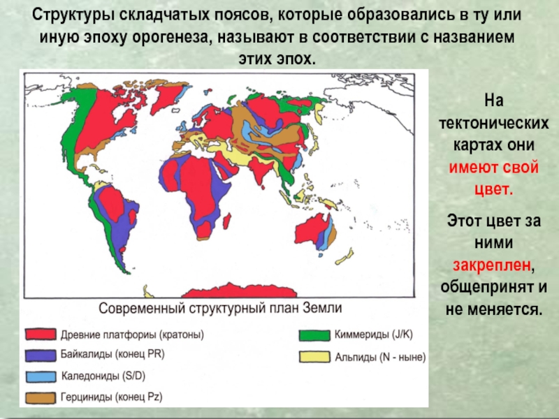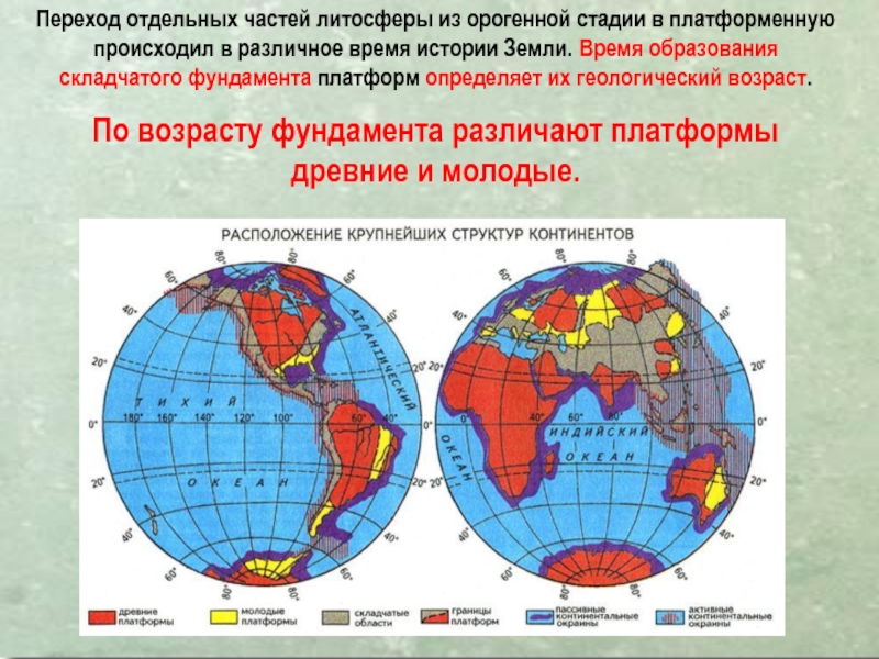 Главные структуры континентов: древние и молодые платформы, орогенные пояса