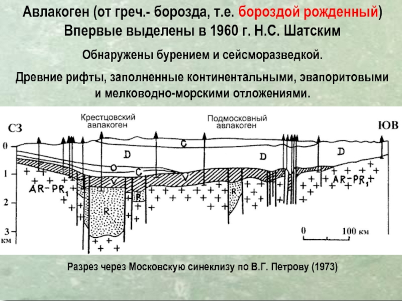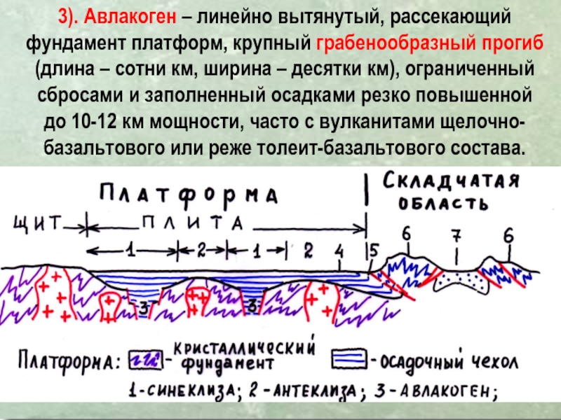 Слайд 823). Авлакоген – линейно вытянутый, рассекающий фундамент платформ, крупный грабенообразный