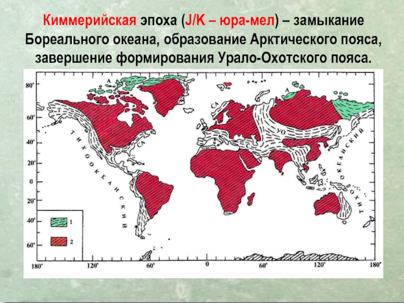 1 – складчатые пояса (Т- Тихоокеанский, УО- Урало-Охотский,