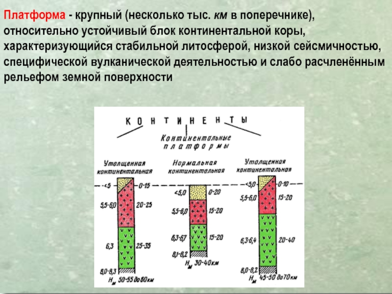 Слайд 5Платформа - крупный (несколько тыс. км в поперечнике), относительно устойчивый