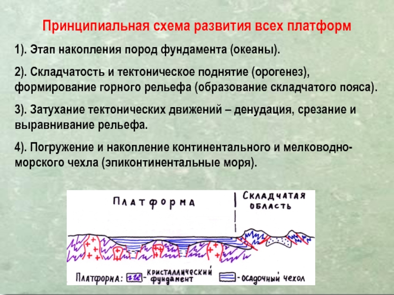 продолжалась до начала, середины или конца палеозойской или даже начала мезозойской эры, и лишь с этого времени начиналось формирование платформенного чехла.