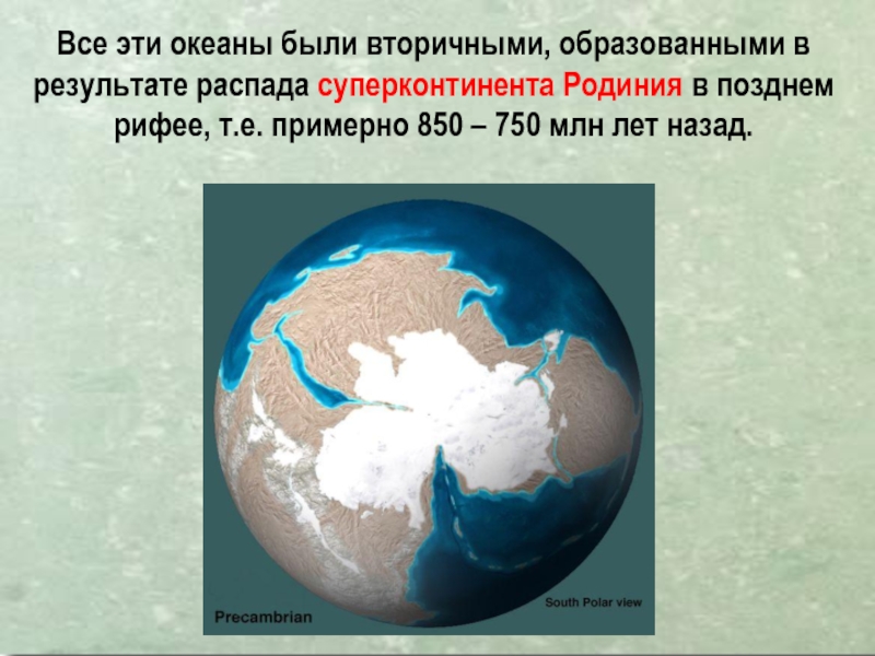 Слайд 21Все эти океаны были вторичными, образованными в результате распада суперконтинента