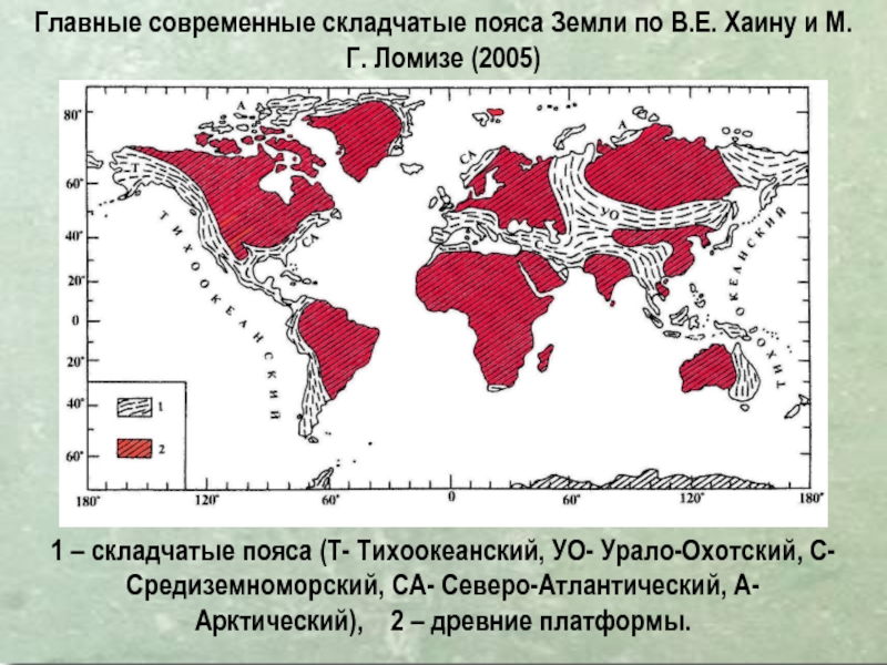 Слайд 10Главные современные складчатые пояса Земли по В.Е. Хаину и М.Г.