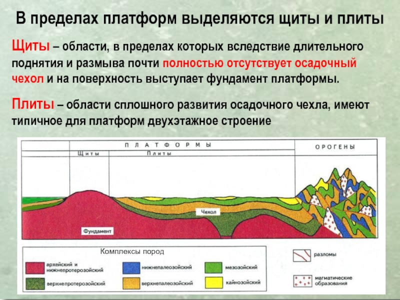 Слайд 75В пределах платформ выделяются щиты и плиты