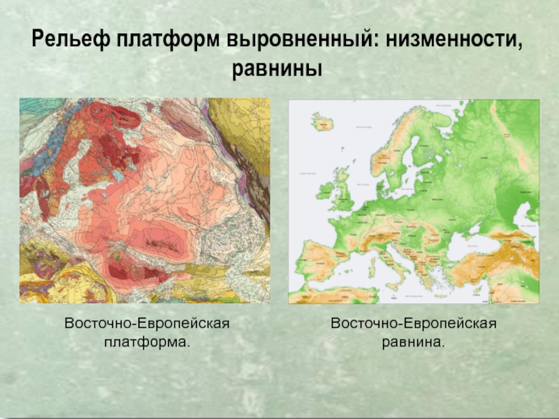 К молодым платформам относятся равнинные территории Западной Сибири, Северного Казахстана, Туранской низменности, Предкавказья, Западной Европы и др.