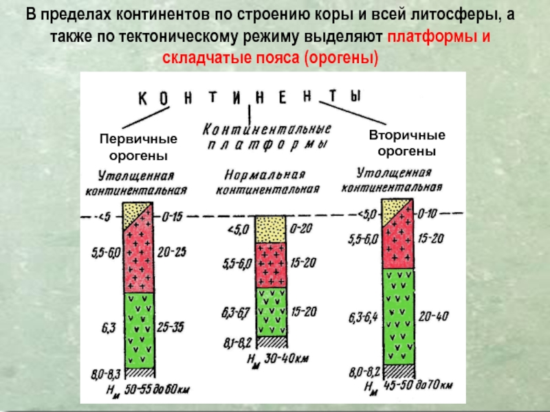 Слайд 4В пределах континентов по строению коры и всей литосферы, а