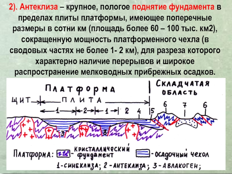 Слайд 812). Антеклиза – крупное, пологое поднятие фундамента в пределах плиты
