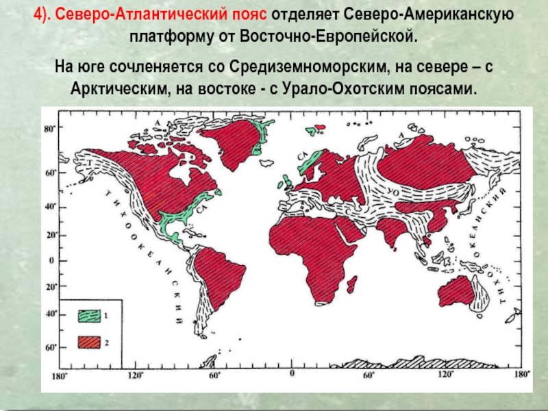 Слайд 144). Северо-Атлантический пояс отделяет Северо-Американскую платформу от Восточно-Европейской.