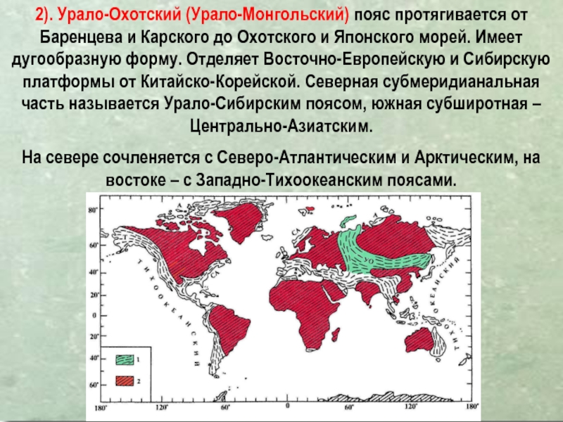 Слайд 122). Урало-Охотский (Урало-Монгольский) пояс протягивается от Баренцева и Карского до