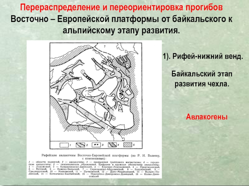 Слайд 88Перераспределение и переориентировка прогибов Восточно – Европейской платформы от байкальского