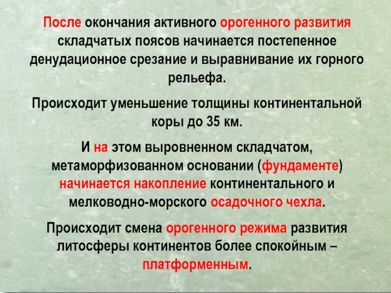 Слайд 6Складчатый (орогенный) пояс характеризуется высокой тектонической активностью в течение всей