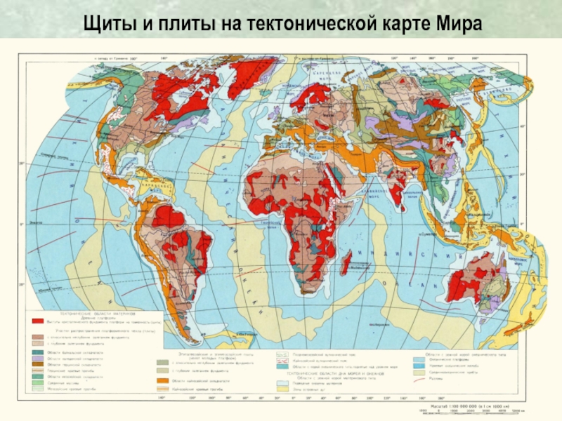 Слайд 76Щиты и плиты на тектонической карте Мира